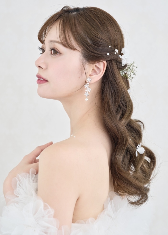 ワイヤーホールのついたフラワーピースも含まれているため、トレンドのかすみ草やパールと一緒にヘア全体に散りばめたコーディネートも可能です!かすみ草の花言葉には「愛」や「感謝」などがあり、晴れの日にふさわしいアイテムでもあります。